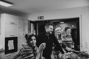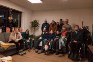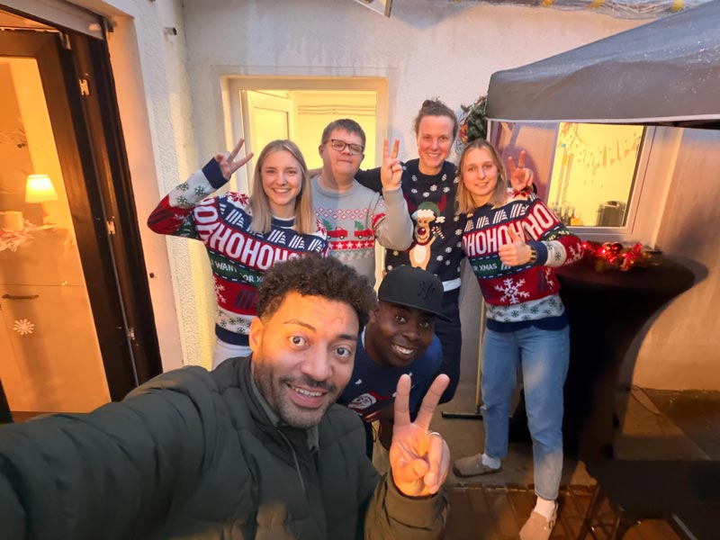 Unsere Betreuer haben für unsere Bewohner ein gemeinschaftliches Weihnachtsfest arrangiert. In den passenden Outfits und tollter Stimmung sind alle Bewohner aus allen Häusern zusammengekommen bei Lagerfeuer, Leckereien und Punsch. Es wurde gelacht, getanzt und Gemeinschaft gefeiert.